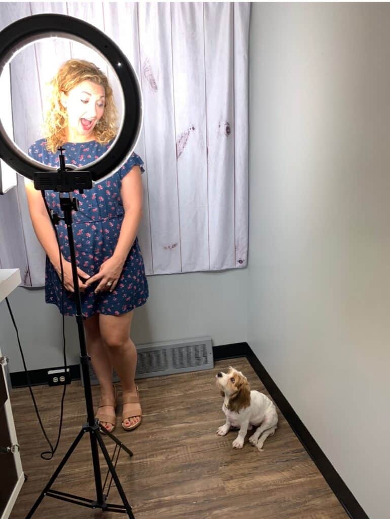 - Say Cheese: Our curl support dogs love getting their picture taken, and they may even photo bomb your ring light session after your haircut and/or style. Yes you can pick them up, yes you can have your “after” picture taken with them, and yes they love being handled.